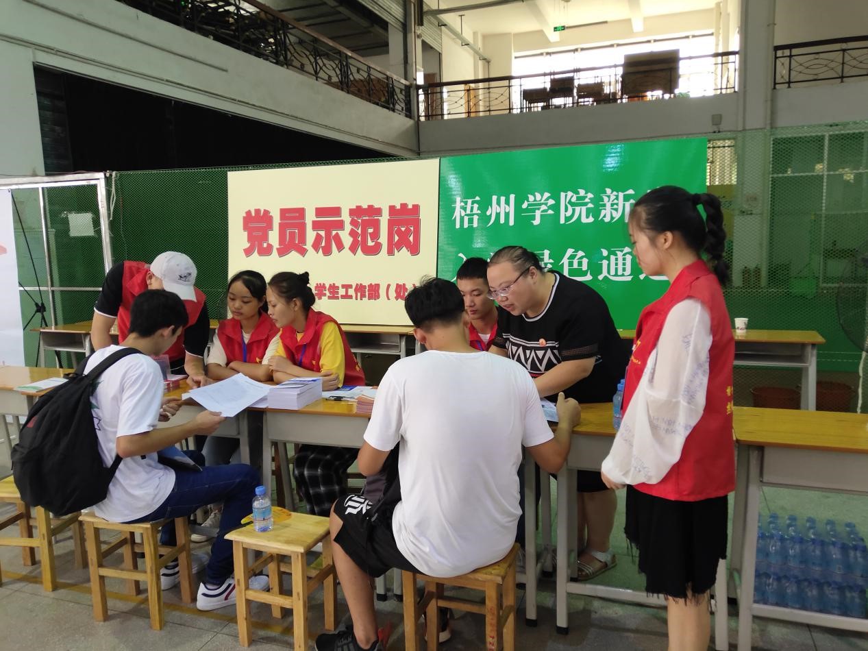 为保证不让每一位学生因家庭经济困难而失学,我校学生工作处学生资助服务中心在9月14日新生入学这一天,设立“绿色通道”,让家庭经济困难学生优先办理入学手续。
