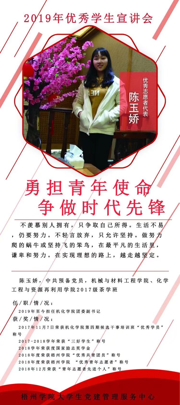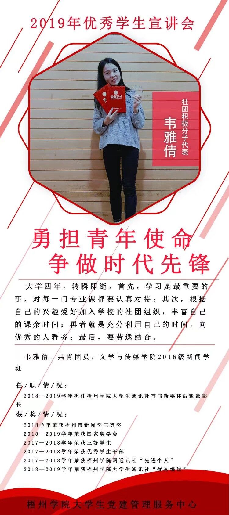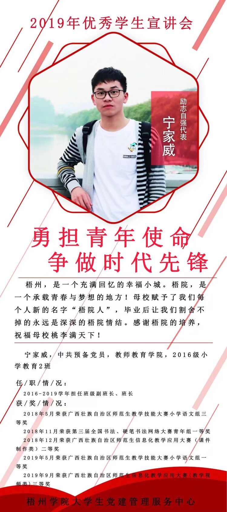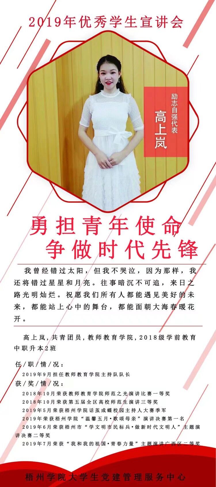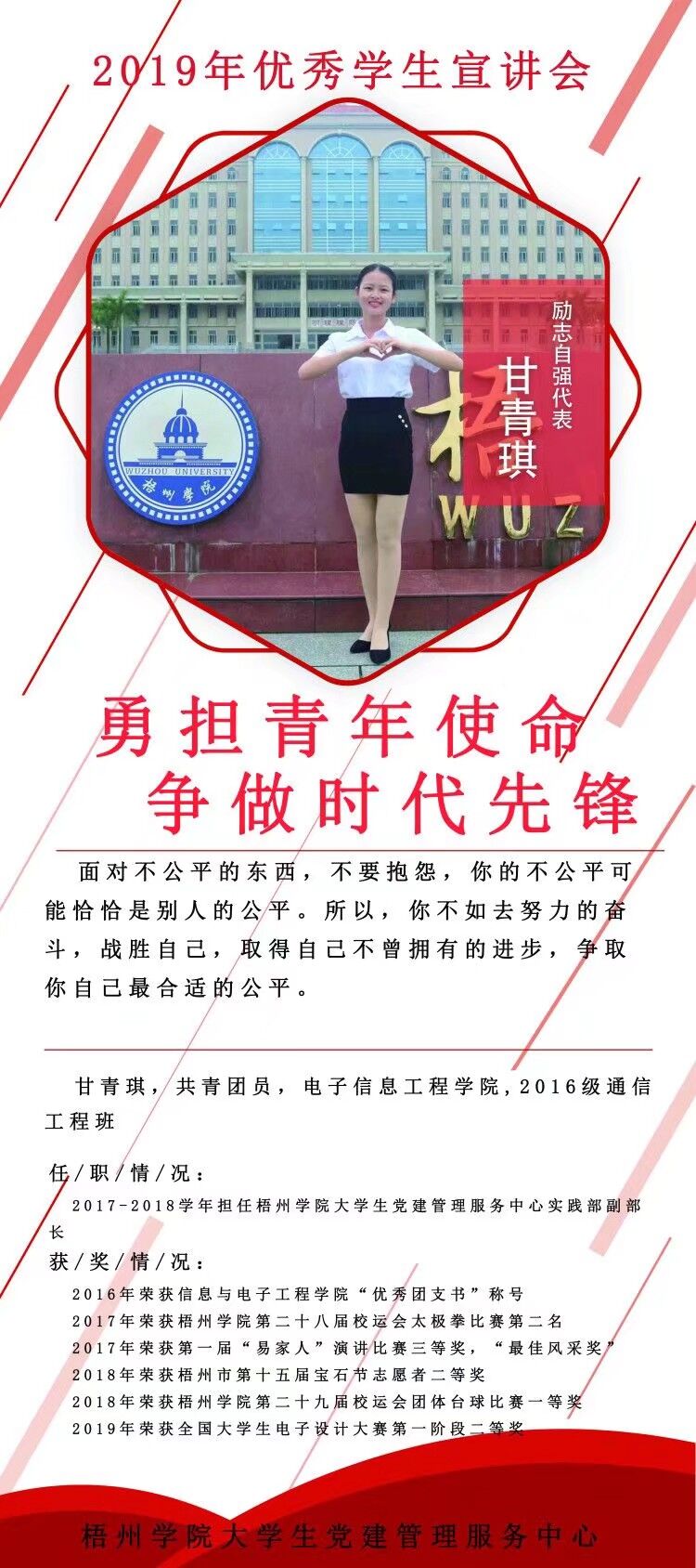梧州学院2019年“勇担青年使命,争做时代先锋”第七届优秀学生宣讲会优秀学生代表