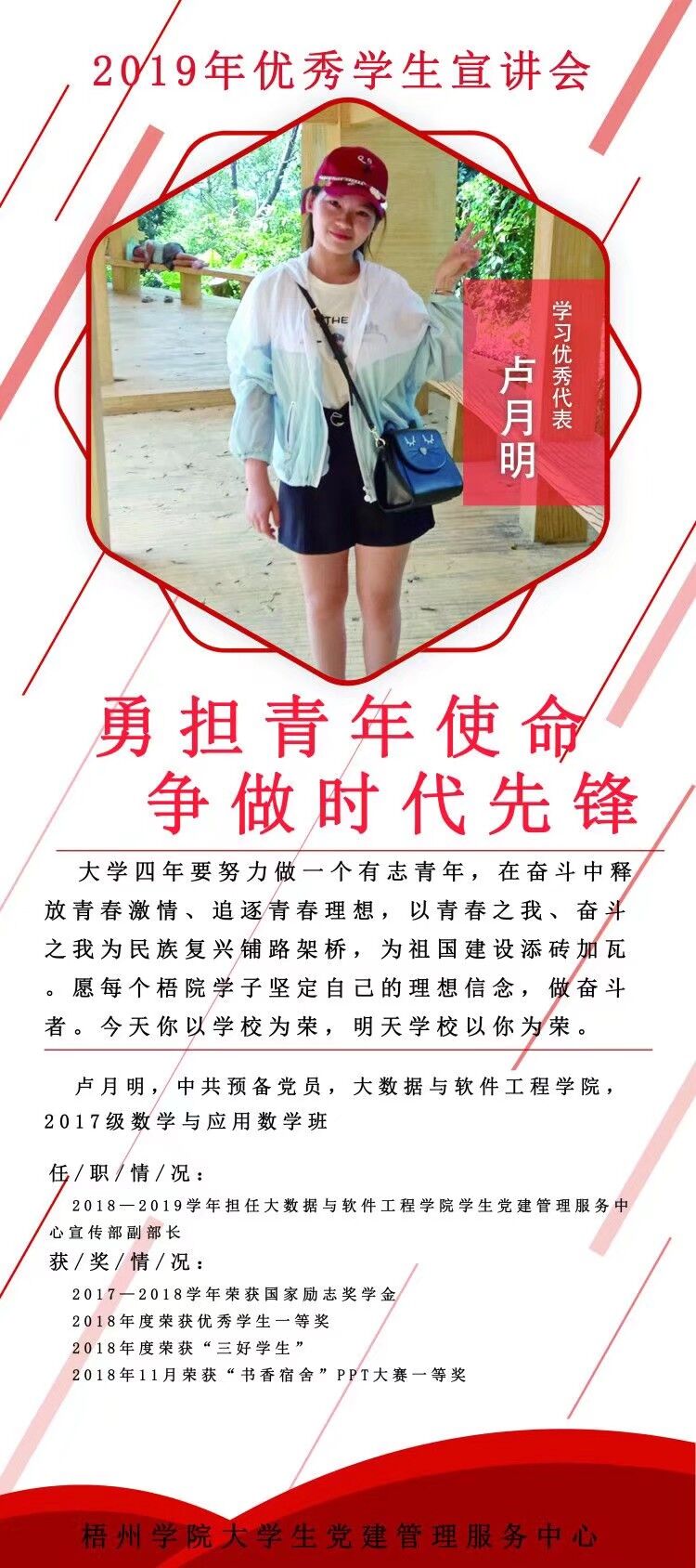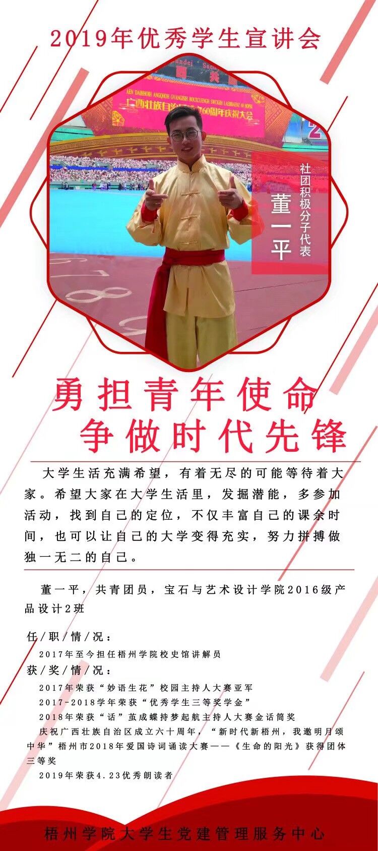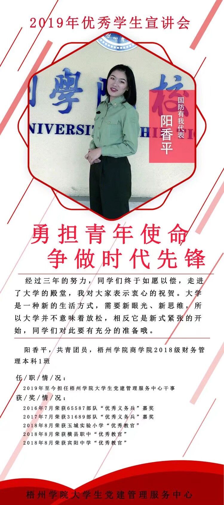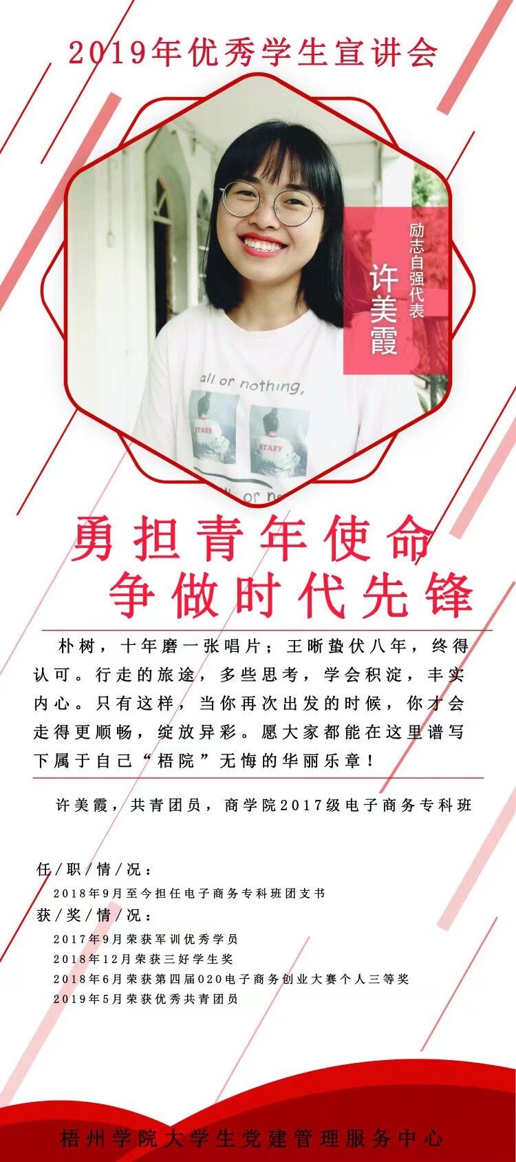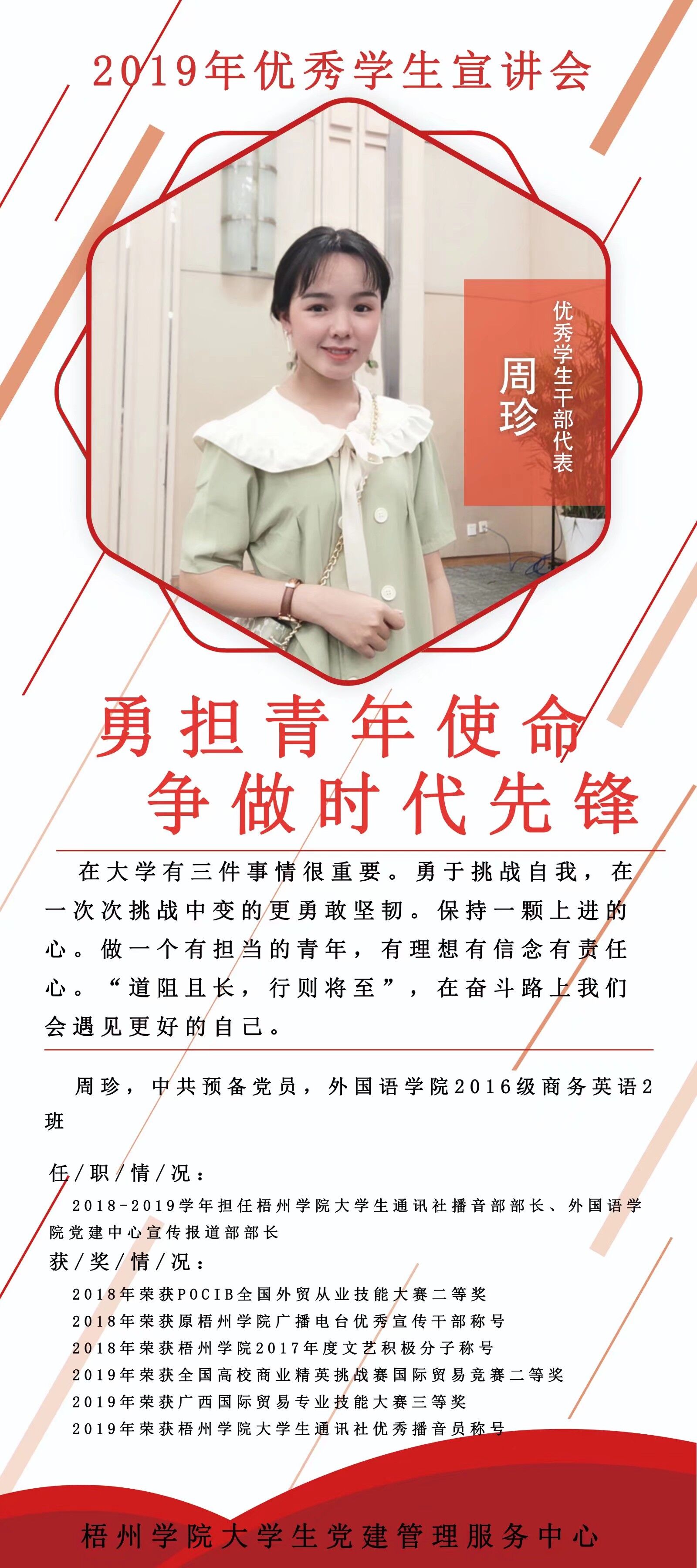 梧州学院2019年“勇担青年使命,争做时代先锋”第七届优秀学生宣讲会优秀学生代表