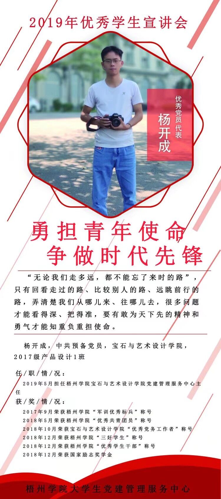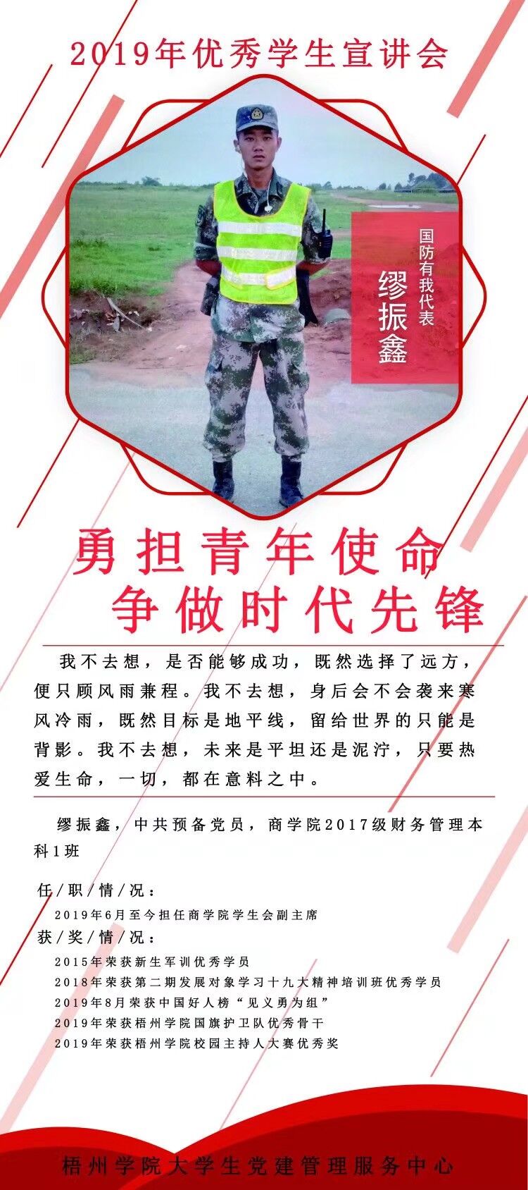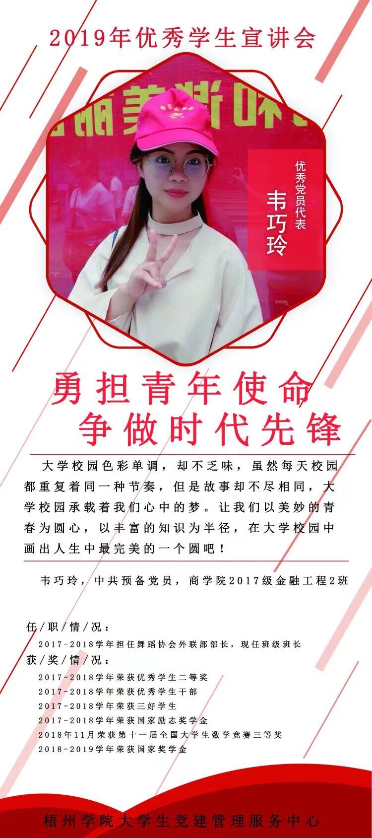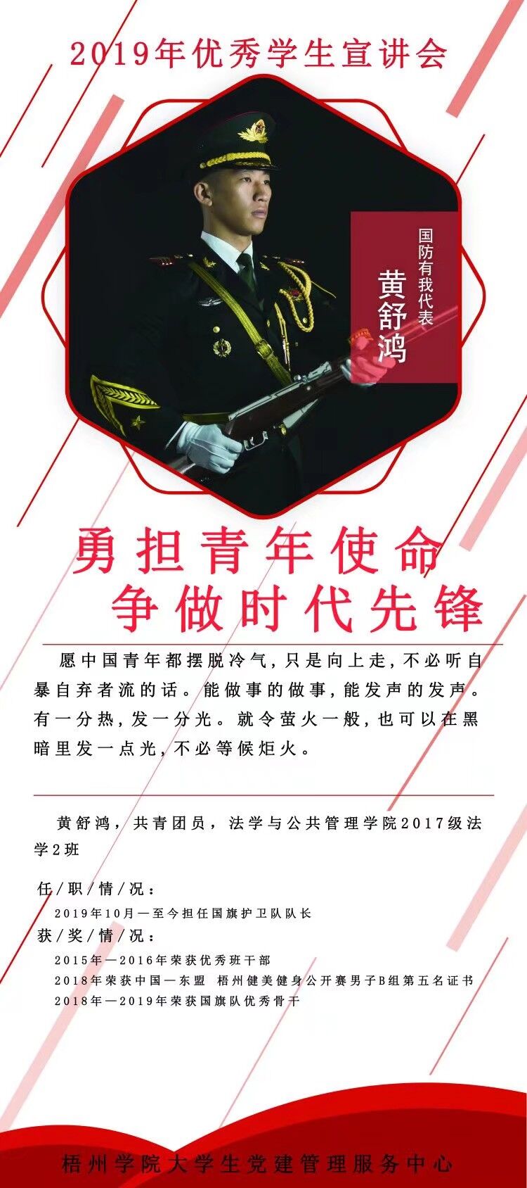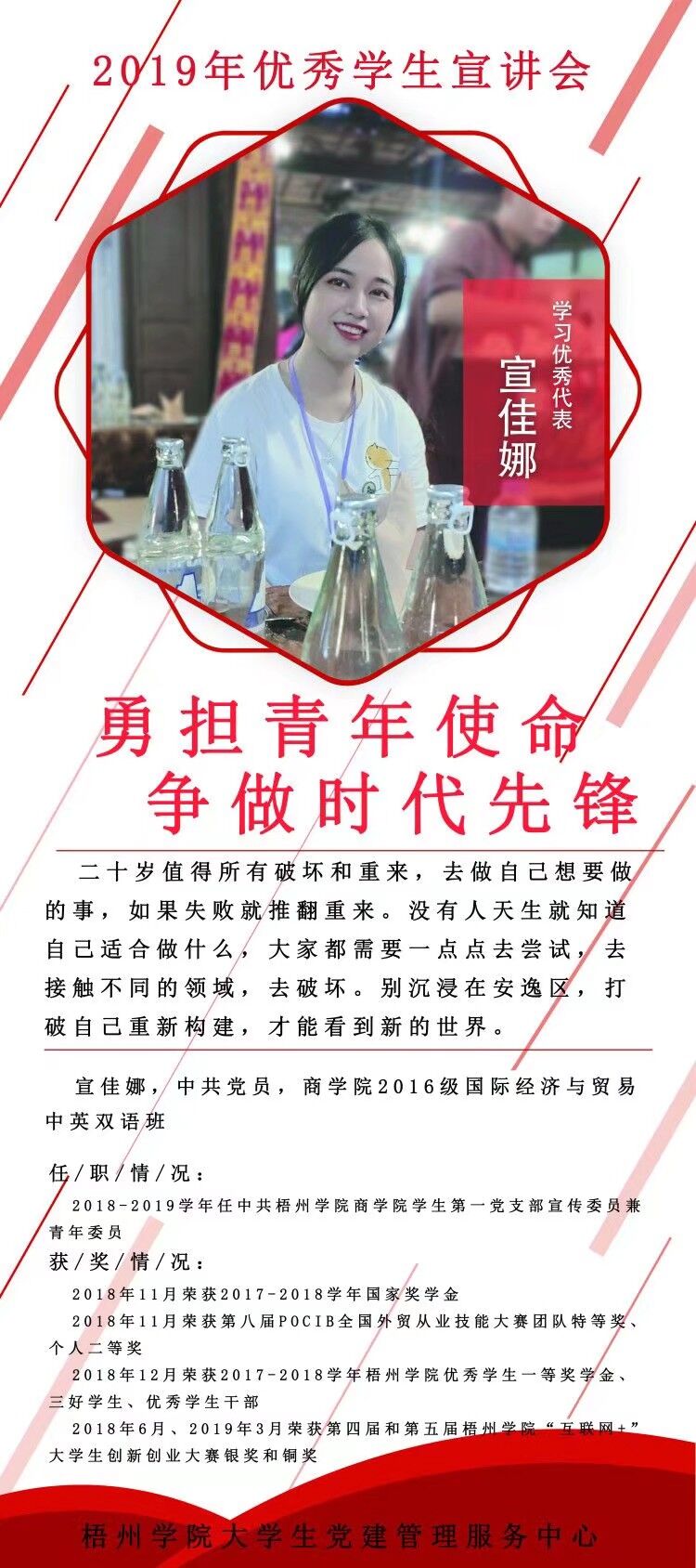 梧州学院2019年“勇担青年使命,争做时代先锋”第七届优秀学生宣讲会优秀学生代表