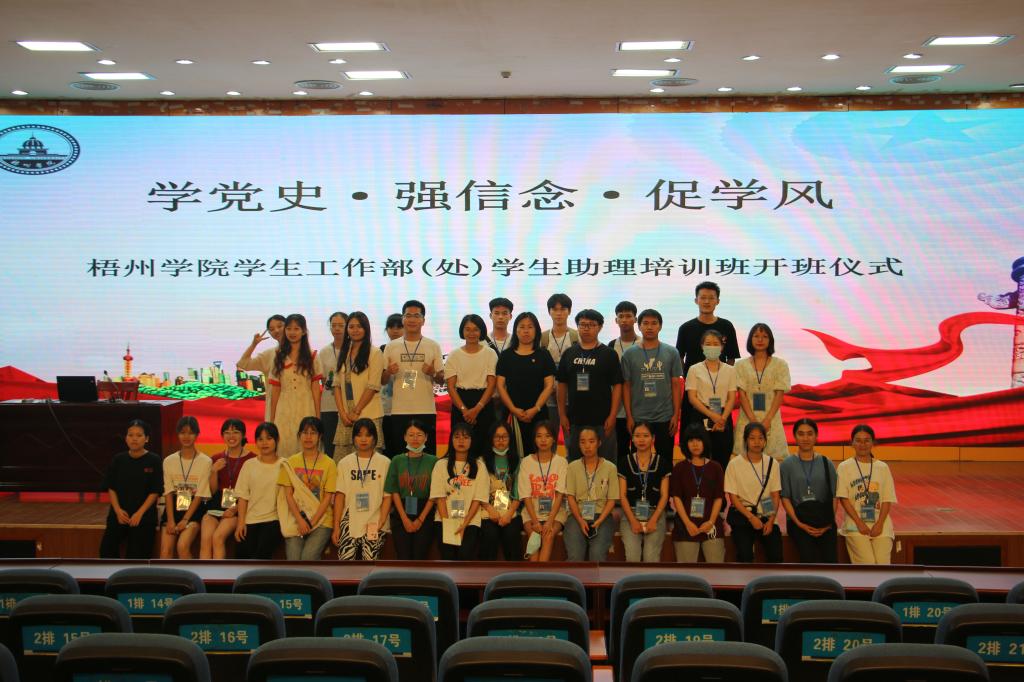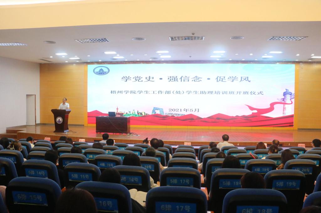 随后,学生工作部(处)部(处)长为全体助理作党史教育的培训班开讲第一课。希望各助理能深入学习习近平新时代中国特色社会主义思想,了解中国共产党百年奋斗历史,充分发扬梧州学院校风校训。