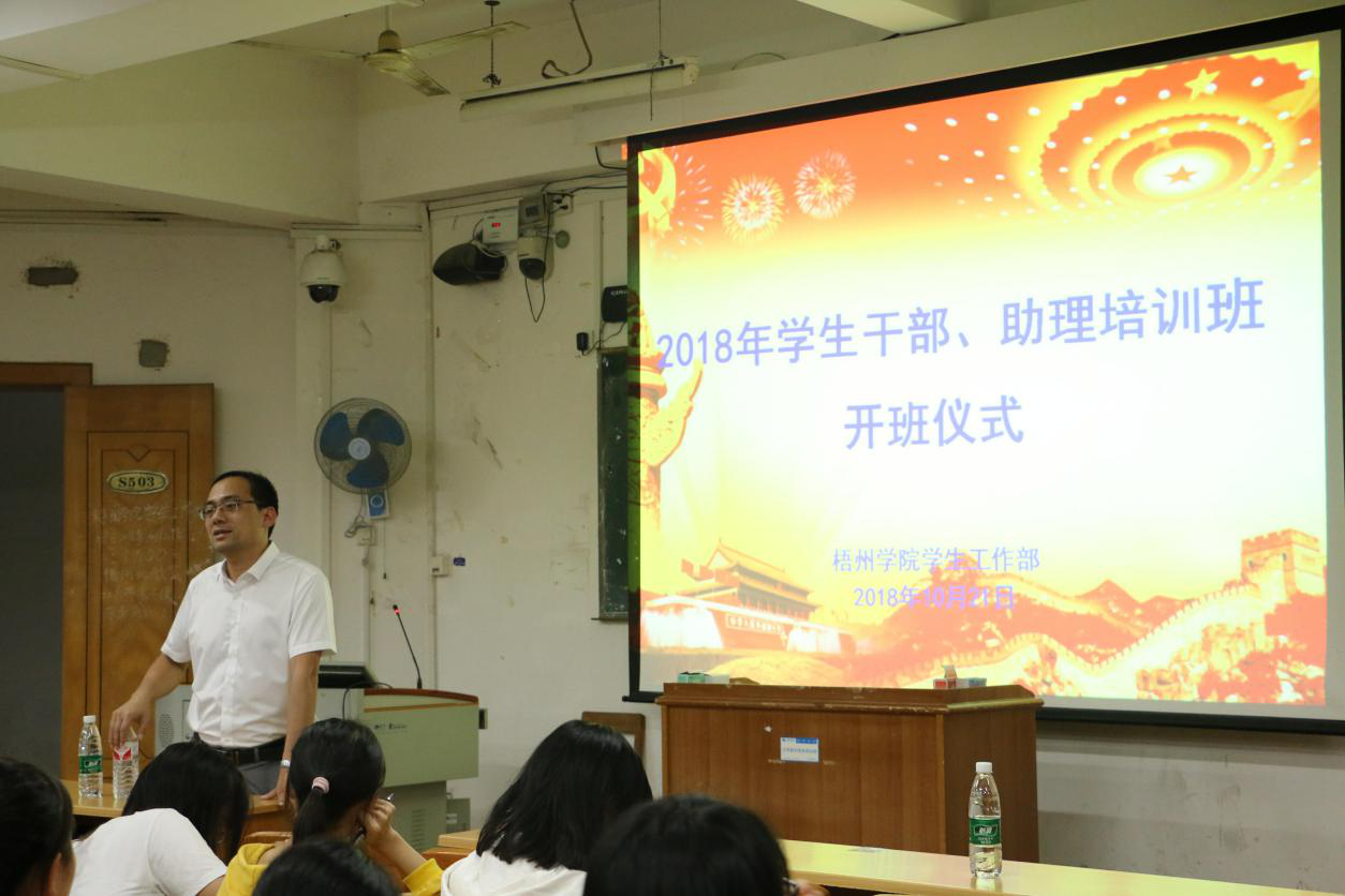 10月21日晚,学生工作部在明理楼s503教室举行学生干部(助理)培训会。学生工作部部长陈远武老师应邀给学生干部作主题是“作为学生干部(助理)应具备怎样的素质”的培训。