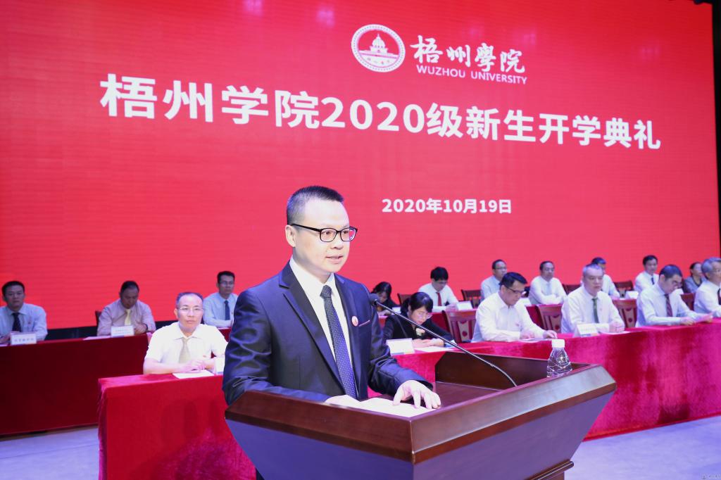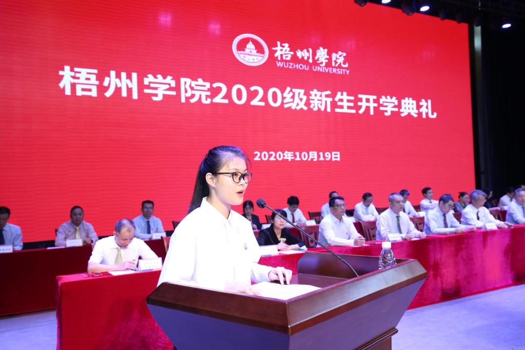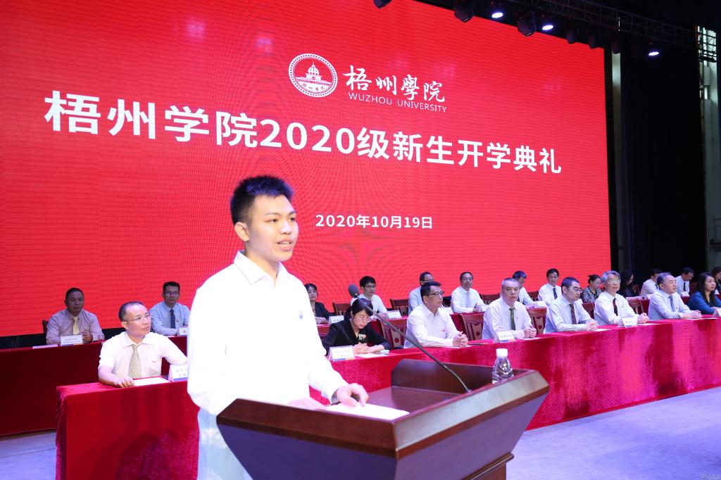 “过去一年,我见证了梧院的迅速发展,从东大门的正式启用,到北校区正式投入使用,再到3A级景区的建成,我深深地为自己是梧院的一分子而感到骄傲和自豪。”来自2019级机械与材料工程学院机械电子工程二班的秦晋烽代表高年级学生发言,他告诉2020级新生:大学不是努力的终点,而是奋斗的开始。学习是我们大学生的第一要务,也是我们通往未来世界大门的必经之路。