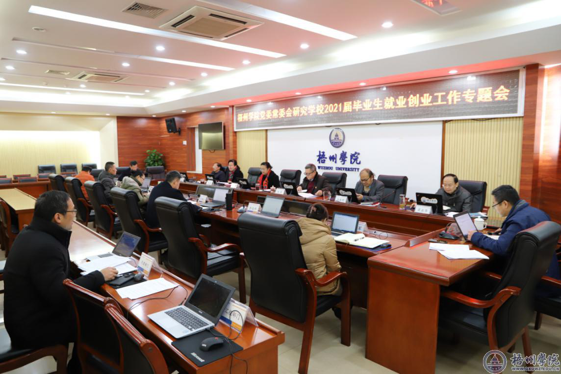 12月18日上午,学校党委常委会在学校明理楼八楼第一会议室召开会议,认真学习贯彻教育部、人力资源社会保障部在京召开的2021届全国普通高校毕业生就业创业工作网络视频会议精神和研究召开梧州学院2021届毕业生就业创业工作会议。