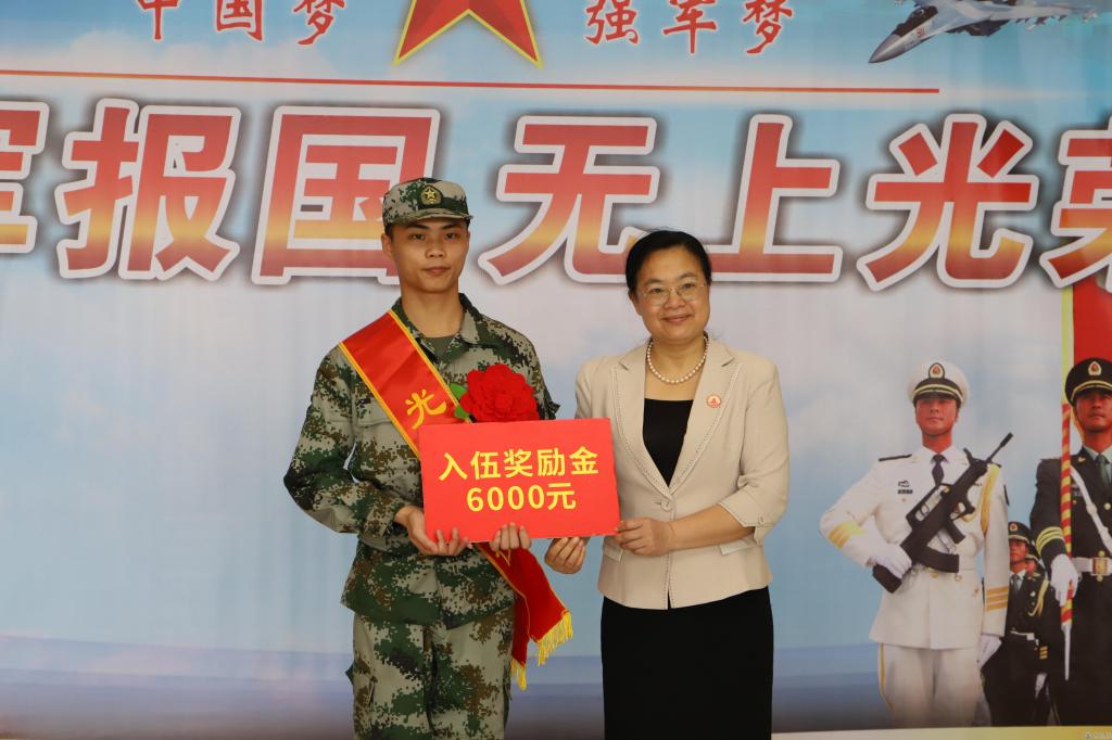 韦仕珍书记为应征入伍学生颁发奖励金