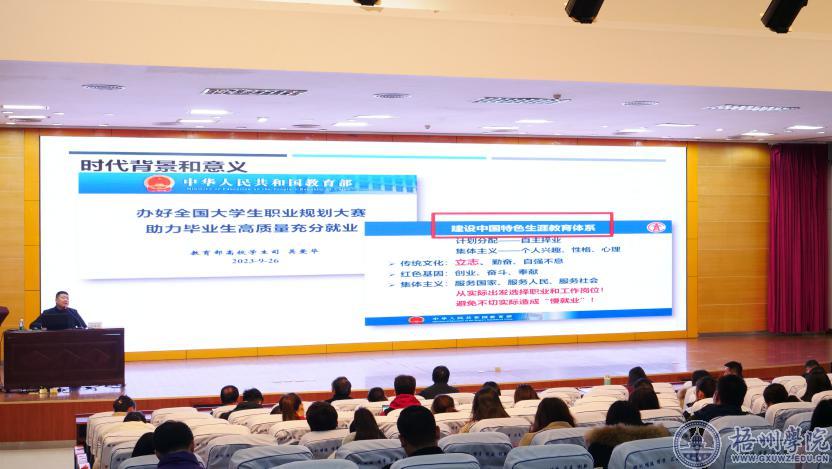 为加强我校辅导员队伍建设,进一步提升教师生涯教育水平和就业指导能力,1月14日,学校在明理楼一楼报告厅举办“2025年大学生职业生涯规划与就业指导师资提升培训会”,邀请了东北师范大学就业创业教育研究院执行院长刘海滨教授担任主讲。学生工作部(处)领导、各二级学院分管学生工作领导及全体辅导员参加讲座。