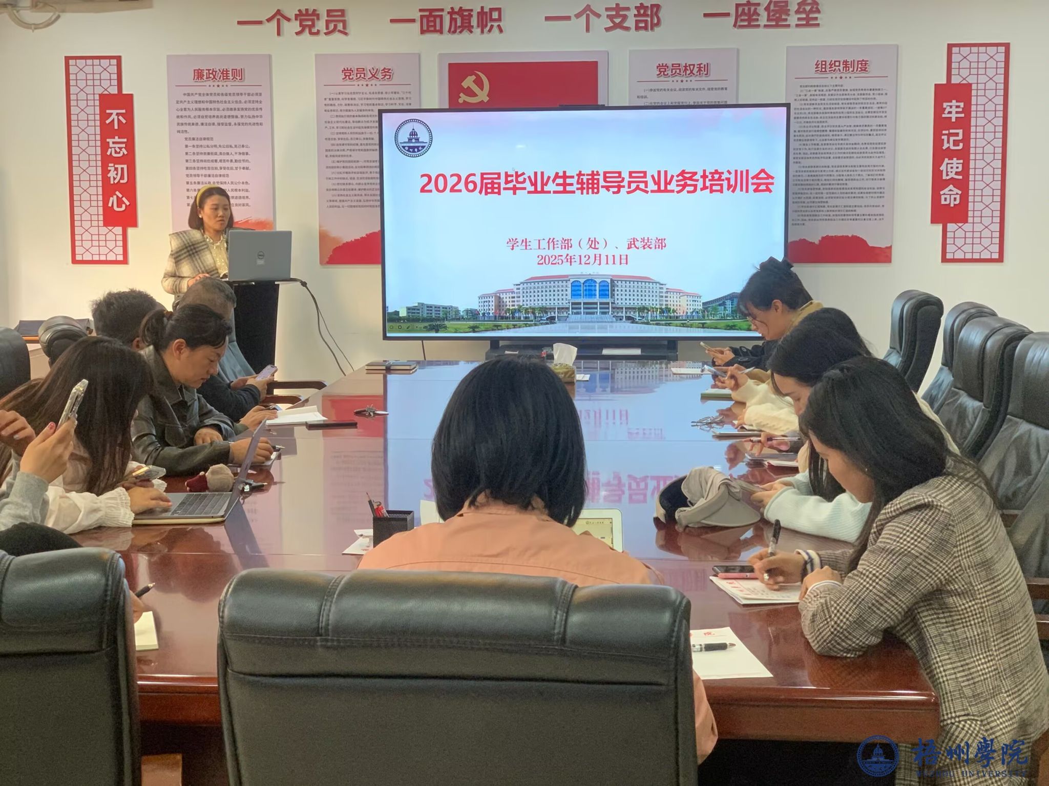 为切实加强辅导员就业指导能力,促进2026届毕业生实现更高质量和更充分就业,12月11日,学生工作部(处)在学工团委党支部党员活动室组织召开2026届毕业班辅导员业务培训会。学生工作部(处)负责人、相关科室负责人及全体毕业班辅导员参加此次培训。