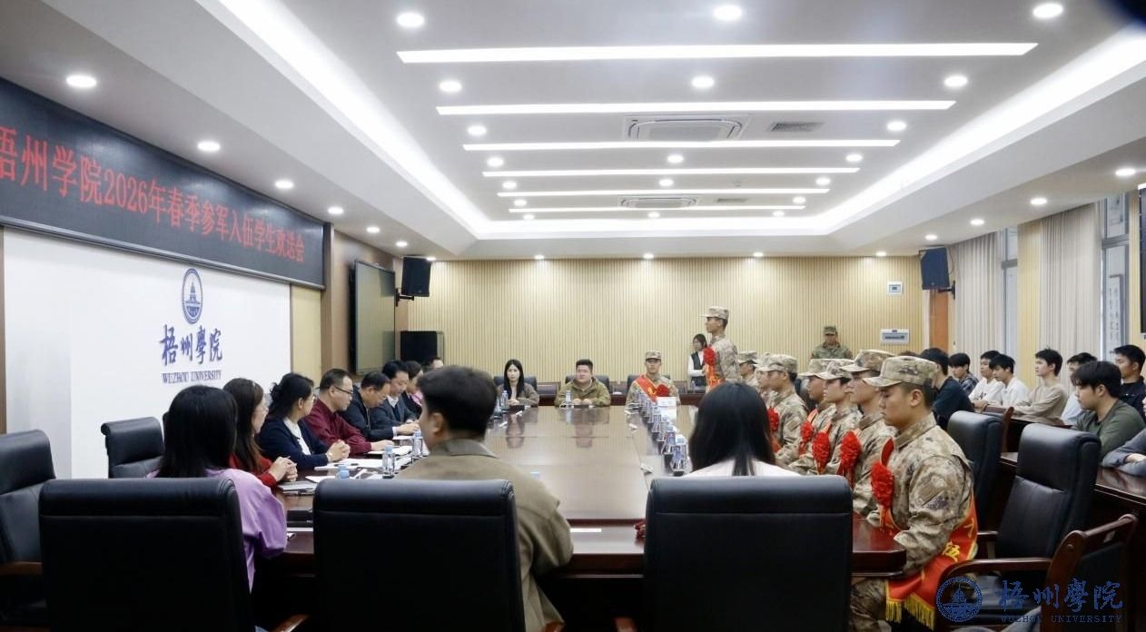 3月16日下午,学校在明理楼八楼第一会议室举行2026年春季参军入伍学生欢送会。学校党委副书记梁业华,党委学生工作部(处)、武装部相关负责人,相关二级学院分管学生工作负责人、辅导员代表、入伍学生代表及在校生代表参加欢送会。