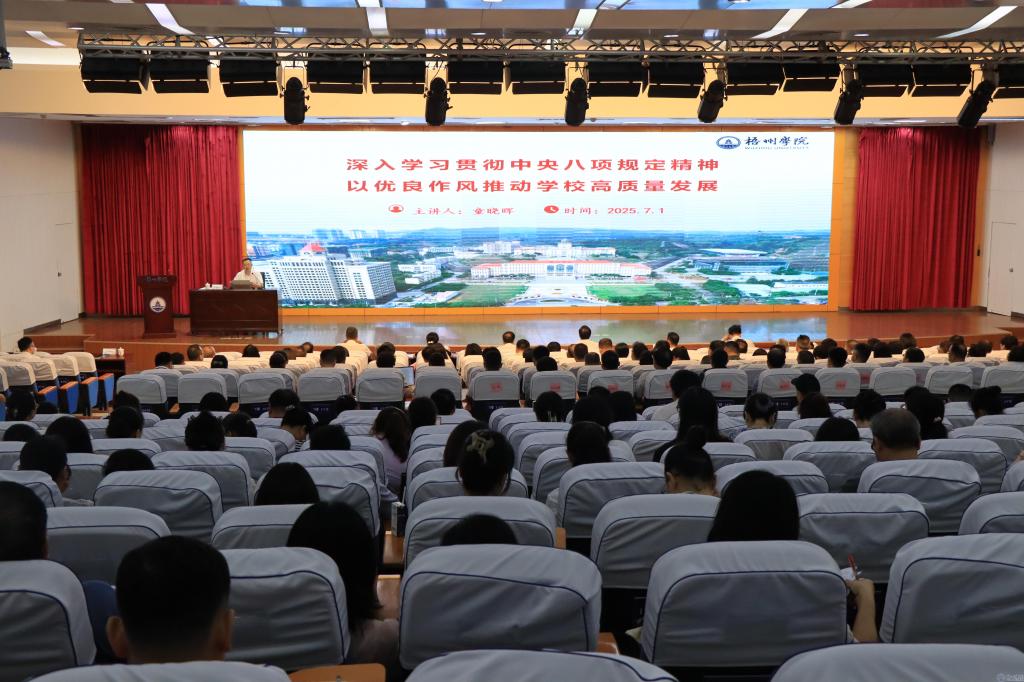 7月1日上午,学校在明理楼一楼学术报告厅举行深入贯彻中央八项规定精神学习交流会暨专题党课。学校领导童晓晖、麻新纯、梁业华、范生汝、莫晨宇、邓小林出席会议。全体教职工党员,离退休教职工党员代表参加会议。会议由校长麻新纯主持。